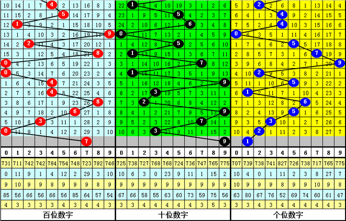 其中,号码奇偶比为29:28,奇偶号码开出比例相当;号码大小比为32:25,大号强势活跃;号码012路比为22:11:24,1路号码出现较少。