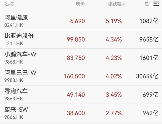港股方面,三大指数均涨超1%,阿里健康、比亚迪股份、小鹏汽车等涨幅居前。
