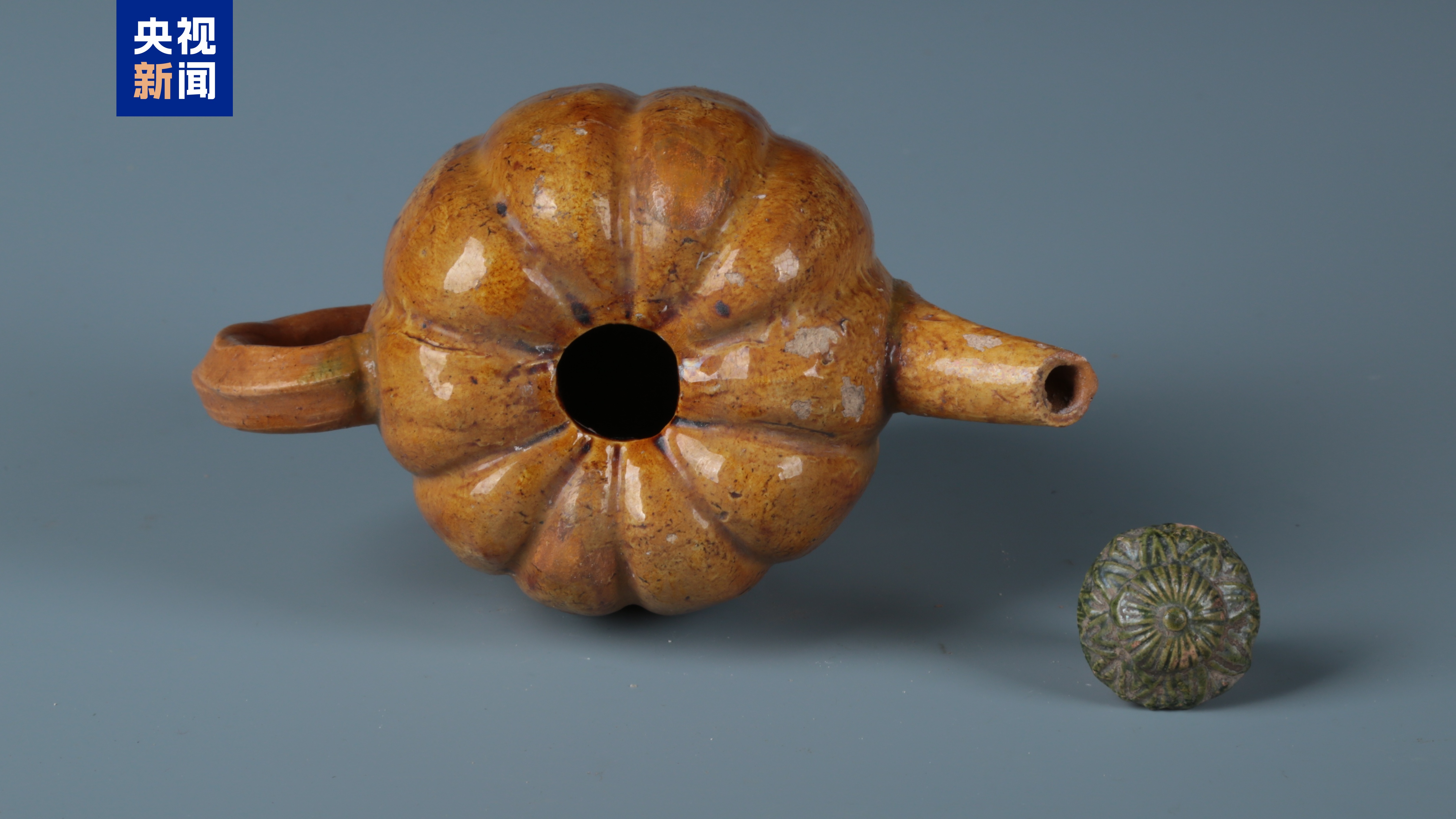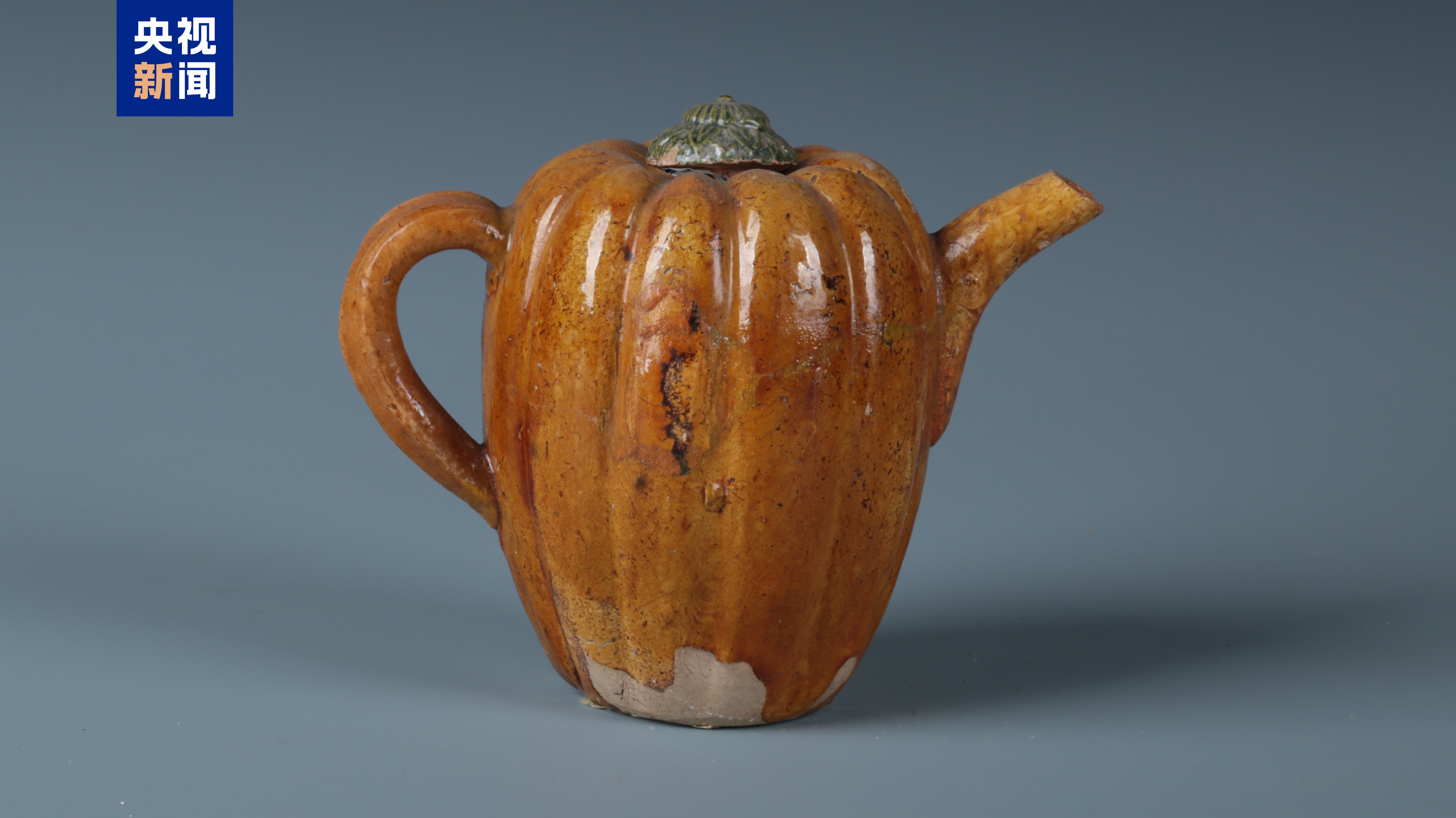 瓜形三彩执壶是一件惟妙惟肖的仿生器